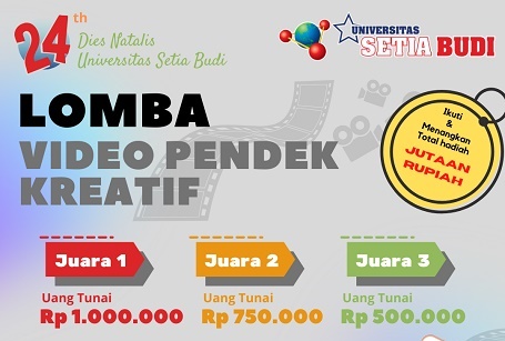 Dalam rangka Dies Natalis ke-24, Universitas Setia Budi Surakarta mengadakan kegiatan Lomba Video Pendek Kreatif berhadiah jutaan rupiah. Lomba ini ditujukan untuk mahasiswa, alumni, dosen, tenaga... Read More